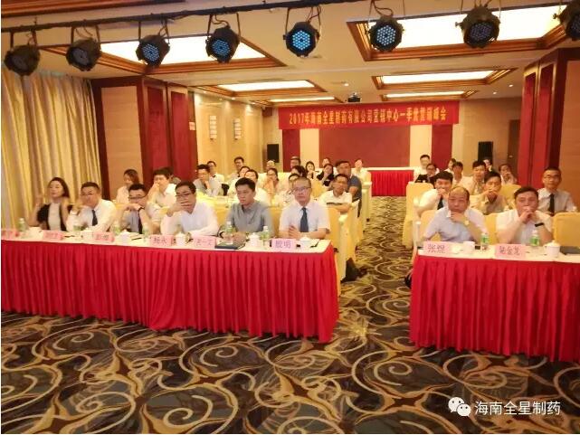 2017年4月8日-9日,海南全星制藥有限公司在??趯汃x大酒店召開2017年一季度營銷峰會。會議由公司營銷中心副總經(jīng)理張煜先生主持,公司營銷中心總經(jīng)理殷明先生、財務(wù)總監(jiān)韓麗女士、營銷總監(jiān)兼市場總監(jiān)楊永先生、營銷總監(jiān)關(guān)一文先生、營銷中心全體同仁和質(zhì)量部同事及各省省區(qū)經(jīng)理出席了本次會議。